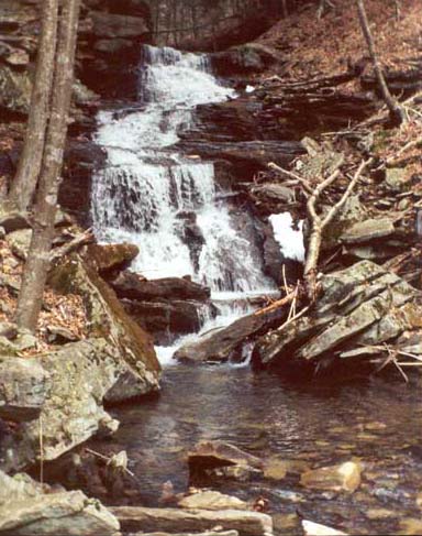Alpine Falls is located on the Loyalsock Trail, which runs through central Pennsylvania. The Loyalsock trail is also known as the LT. The trail is about 59 miles long and runs from route 87 around Barbours to 220 near Forksville. Alpine Falls is located near the Worlds End section of the trail. I would reccomend hiking near Alpine Falls on the scenic Loyalsock Trail.